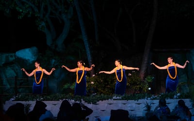 Guests consistently rave about the spectacular fire dancing and overall entertainment quality, with many noting this ranks among the best luaus they've experienced across multiple Hawaiian islands. The performances blend vibrant choreography with cultural storytelling, though one visitor mentioned the pacing felt a bit slow and theatrical rather than purely traditional. The setting at the resort is gorgeous, featuring waterfalls and fire effects that create an unforgettable atmosphere, especially as the sun sets. The food earns high marks overall, with the kalua pork and surprisingly excellent poke standing out as highlights. The buffet offers generous variety, including a dedicated kids' section with familiar favorites. A few guests had mixed opinions on specific dishes or desserts, and one mentioned the lighting gets quite dark once the show begins, making it tough to see your plate if you're still eating. Service gets special praise, with server Lorraine mentioned multiple times for her attentiveness. Convenient for those staying at nearby properties, this luau delivers a memorable evening of entertainment, culture, and hospitality that keeps families and couples coming back.