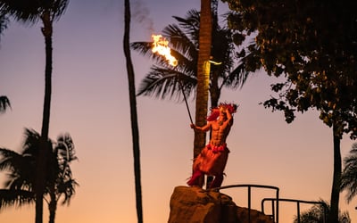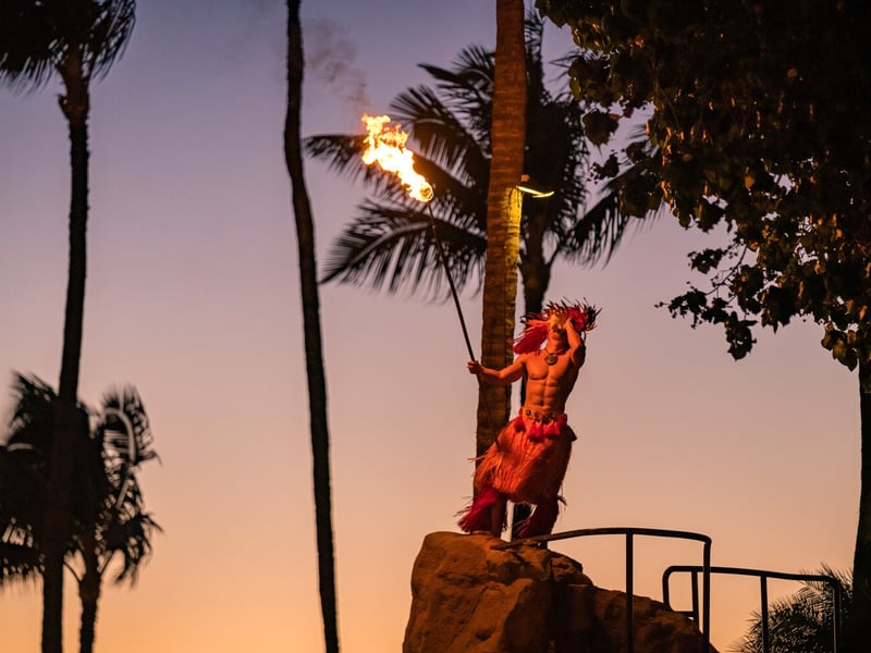 Experience Hawaiian culture, buffet dining, and a thrilling fire knife finale