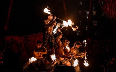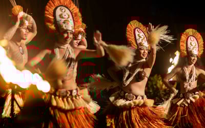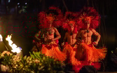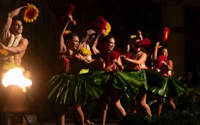 Guests consistently rave about the spectacular fire dancing and overall entertainment quality, with many noting this ranks among the best luaus they've experienced across multiple Hawaiian islands. The performances blend vibrant choreography with cultural storytelling, though one visitor mentioned the pacing felt a bit slow and theatrical rather than purely traditional. The setting at the resort is gorgeous, featuring waterfalls and fire effects that create an unforgettable atmosphere, especially as the sun sets. The food earns high marks overall, with the kalua pork and surprisingly excellent poke standing out as highlights. The buffet offers generous variety, including a dedicated kids' section with familiar favorites. A few guests had mixed opinions on specific dishes or desserts, and one mentioned the lighting gets quite dark once the show begins, making it tough to see your plate if you're still eating. Service gets special praise, with server Lorraine mentioned multiple times for her attentiveness. Convenient for those staying at nearby properties, this luau delivers a memorable evening of entertainment, culture, and hospitality that keeps families and couples coming back.