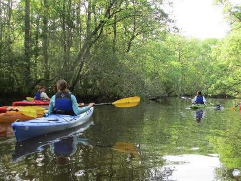 Paddle serene blackwater creeks and spot wildlife in a protected wilderness setting.