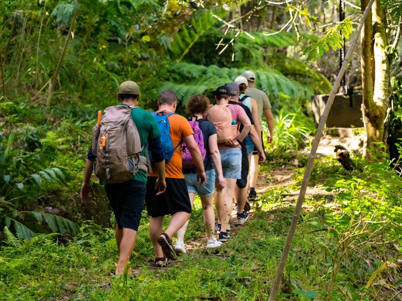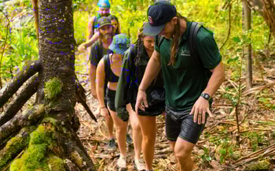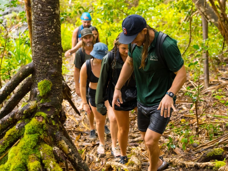 The rainforest waterfall hikes here deliver something truly special, with knowledgeable guides who consistently earn praise for making each trek memorable. Guides like Gail, Joel, Caden, Ali, Brian, and George come up repeatedly for their deep expertise about local plants, island history, and ecosystems. They'll point out wild guava and lilikoi for tasting along the way, and they clearly prioritize safety while maximizing the fun. Many reviewers mention cliff jumping and swimming under waterfalls as highlights, with guides providing patient encouragement for first-timers. The experience takes you to waterfalls on private property you couldn't access otherwise, and the terrain requires a moderate fitness level. You'll be walking across creeks, navigating slippery rocks and roots, and definitely getting wet, so proper water shoes with good grip are essential. Families with kids from age 8 and up have had wonderful times, and even rainy conditions don't seem to diminish the adventure. Several people wished they'd booked the longer tour option because the experience felt too good to end. The guides' training and local knowledge really set these tours apart from what you might find elsewhere.