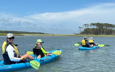 Justin and Laurie run a welcoming kayaking operation that consistently delivers memorable marsh and island tours. Their guides, including Justin, Clark, Diego, and Laurie, are praised for being knowledgeable about local wildlife and sharing fascinating details about birds, crabs, horseshoe crabs, and other creatures along the way. The Waties Island trips are particularly popular, offering beautiful scenery, a chance to explore a private beach, and interesting stops like the "oyster wall." Twilight paddles add a special touch with gorgeous sunsets and bioluminescent algae displays. The logistics are hassle-free. They provide quality kayaks and life vests, include shuttle service to the launch point, and handle rescheduling gracefully when weather doesn't cooperate. Tours typically last about 2.5 hours with time to swim, shell, or explore the island. First-timers feel comfortable with the patient instruction, and repeat customers keep coming back year after year. One reviewer mentioned a guide with poor English and vague instructions that led to minor navigation issues, but this seems to be an isolated experience amid overwhelmingly positive feedback about the personable, informative guides who make the trips both educational and fun.