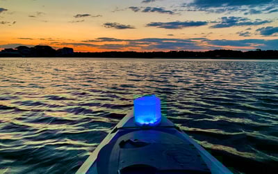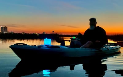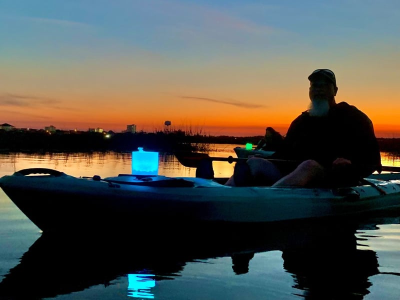 Paddle glowing marsh creeks to a hidden beach as sunset fades to lantern-lit twilight