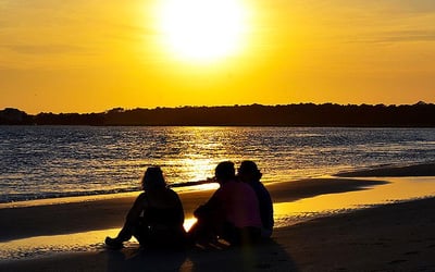 Chase sunset colors with a lantern-lit paddle and an island beach stop