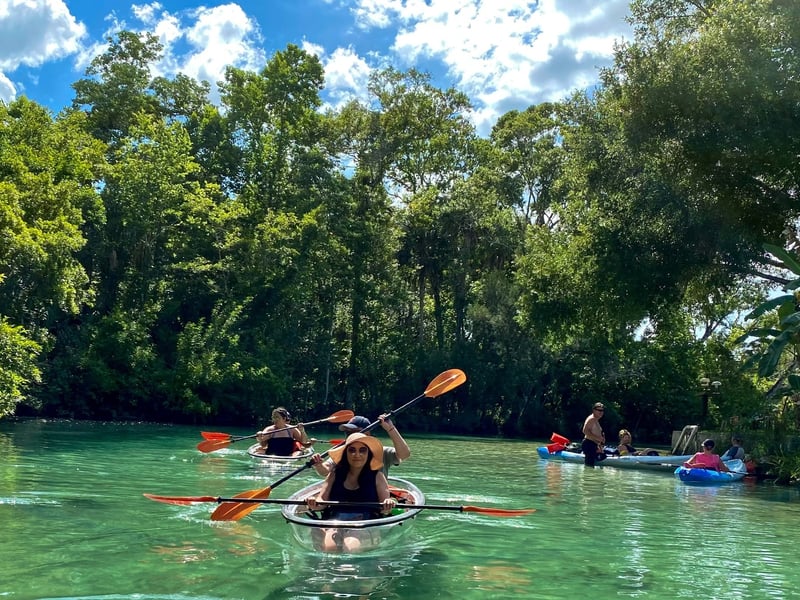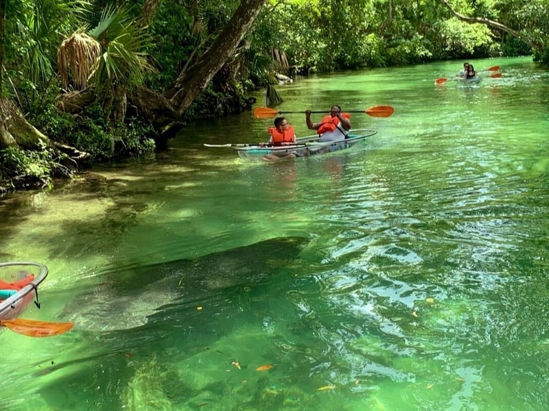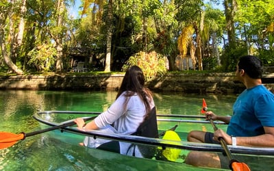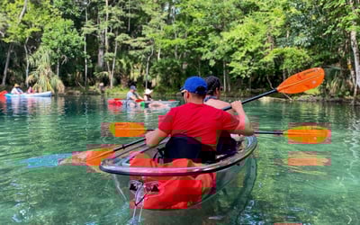 Glide the Weeki Wachee River in 100% clear tandem kayaks on a guided ecotour. Learn about local history, ecosystems, and watch for manatees and other wildlife.
