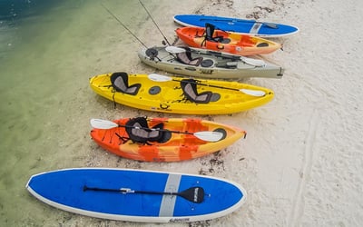 Get kayaks, paddle boards, or fishing gear delivered free on Marco Island, Isles of Capri, and Goodland for a full week. Launch from your property and explore nearby canals and waterways, or pick up gear from the shop.