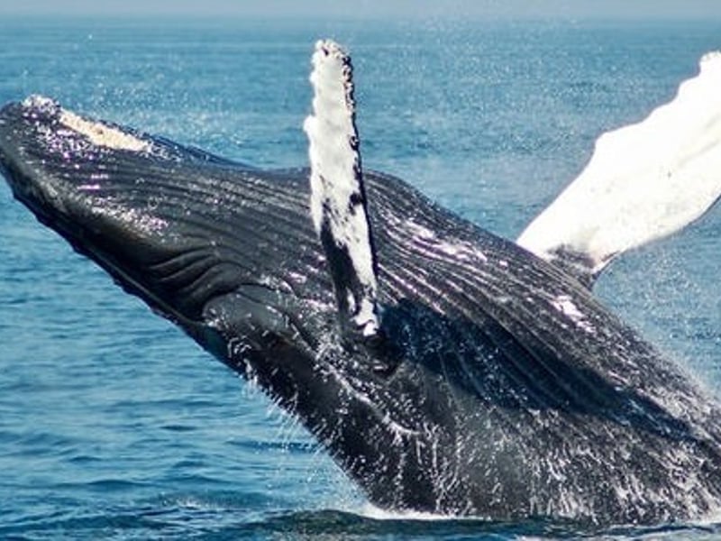 Participants must be ages 8+; maximum weight per kayak is 425 lbs. Whale sightings are guaranteed Dec 1–Apr 1; outside those dates this is a coastal and wildlife tour. Tours may be changed or canceled for unsafe conditions.