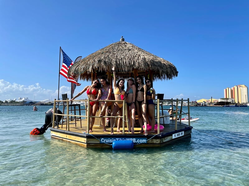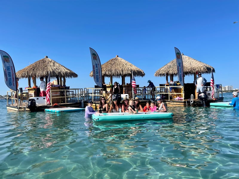 Anchor at a lively sandbar to swim, lounge on floating mats, and celebrate during a 2–3 hour tiki boat adventure.