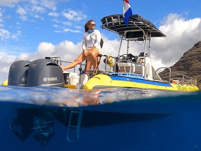 Experience humpback whales off Oahu on a small-group boat tour. During the winter season, you can also snorkel with sea turtles and fish.