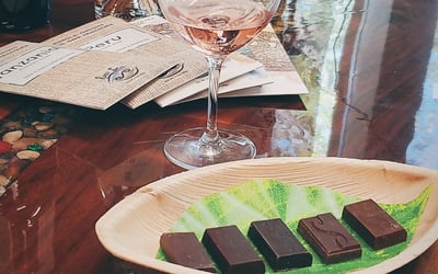 Sample five craft chocolates paired with three wines while learning bean-to-bar techniques