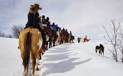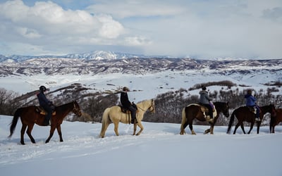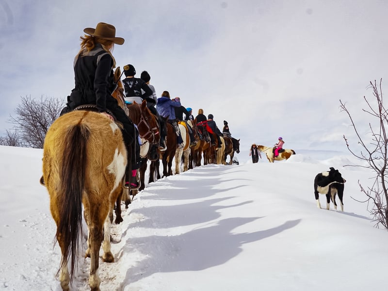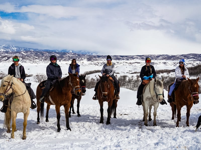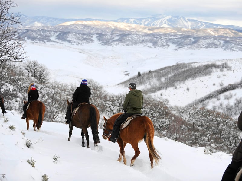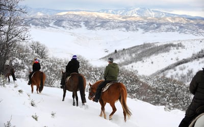 Explore snowy Saddleback Ranch on a guided winter horseback ride. Take in mountain views and warm up afterward with hot chocolate.