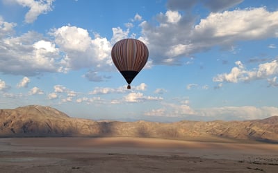 Fly at winter sunset in a private hot air balloon with your own pilot. Available November to March, enjoy about 45 minutes of flight time and transportation to the flying area.