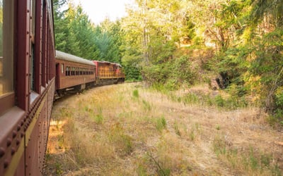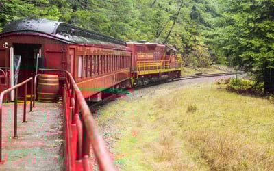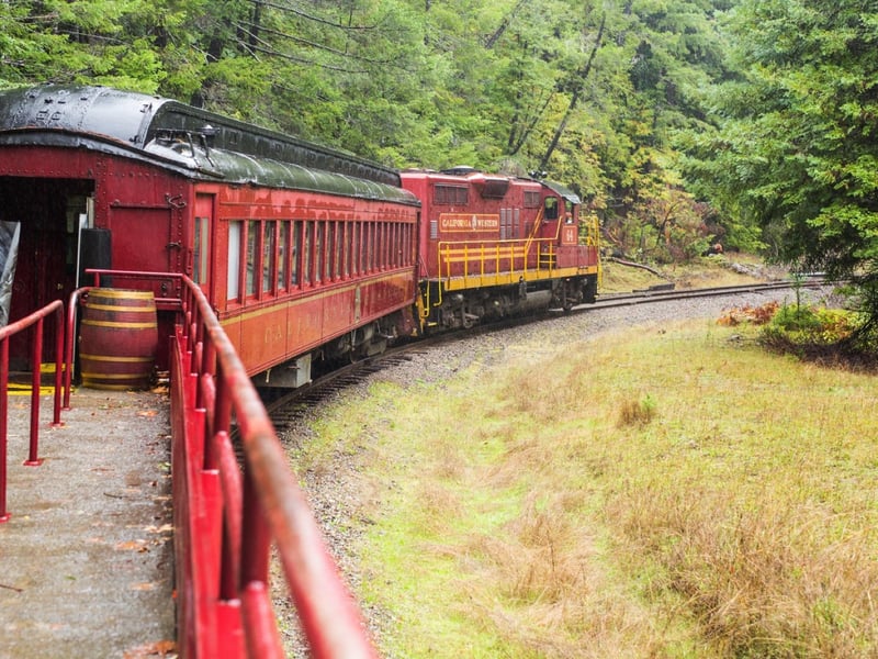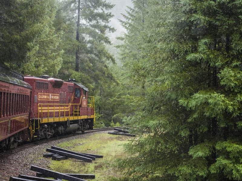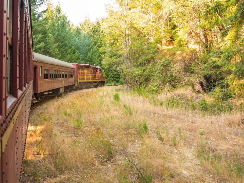 Ride a scenic round trip from Willits over the highest point of the line into the redwood-filled Noyo River Canyon. Travel through Tunnel #2 and stop at Crowley to appreciate an iconic tree and the canyon views.