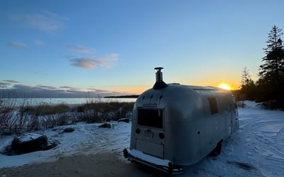 Wood-fired Airstream sauna delivered in Door County for a relaxing escape