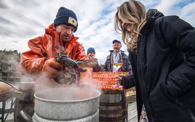 Settle into a cozy seaside lodge for a small-group dinner at the working waterfront. Taste Maine oysters, enjoy a freshly caught lobster meal, and hear stories from the coast.
