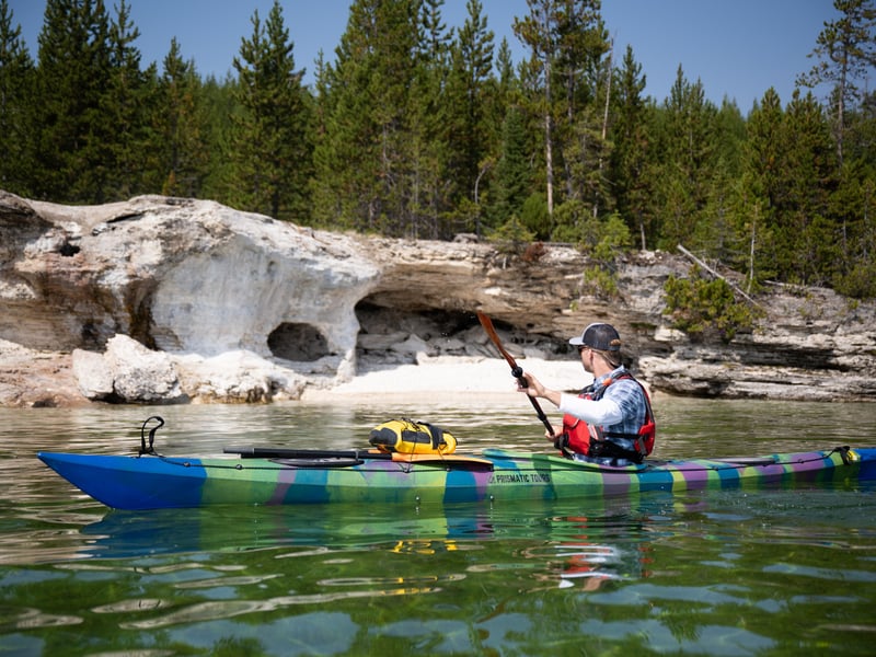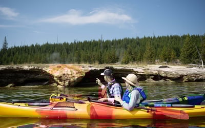 Prismatic Tours offers a standout kayaking experience on Yellowstone Lake that reviewers consistently describe as a highlight of their park visit. The six-mile paddle takes you up close to geysers and thermal features from a perspective you can't get from the boardwalks, with regular wildlife sightings like bald eagles and elk along the shoreline. Guides Dylan and Maddi get enthusiastic praise across reviews for being personable, knowledgeable, and genuinely engaging with everyone from young children to older adults. The company keeps groups intentionally small, which means less crowded launches and more personal attention throughout the trip. Both sunset and morning tours are popular, with many noting how peaceful and relaxing it feels to be on the water away from typical tourist crowds. Equipment is quality, and guides make beginners feel completely comfortable while still keeping experienced paddlers happy. Even visitors who initially wanted to kayak independently ended up thrilled they went with a guided tour, thanks to all the park history and geological insights they gained.