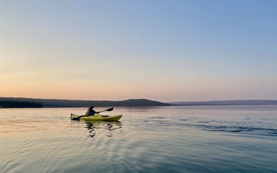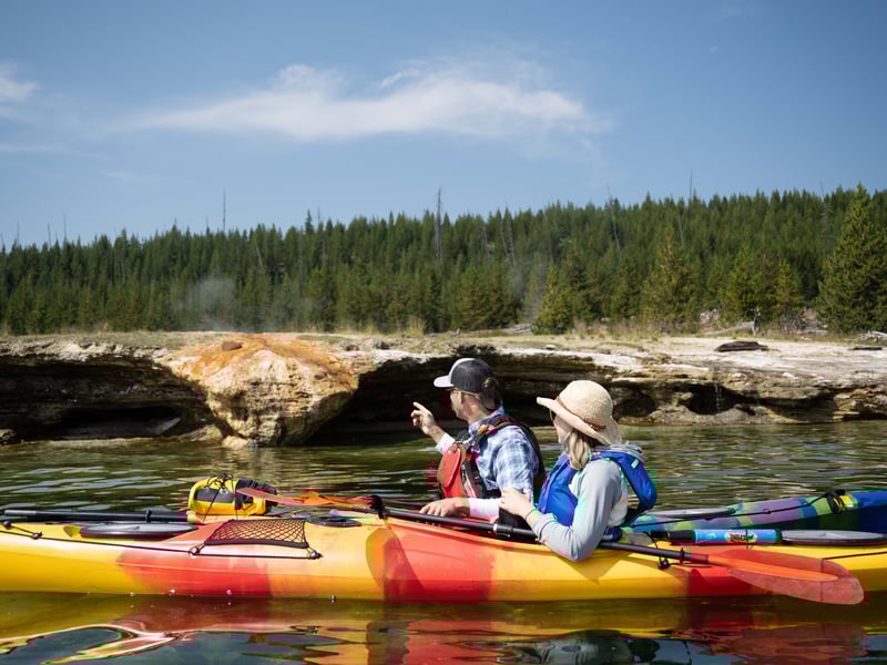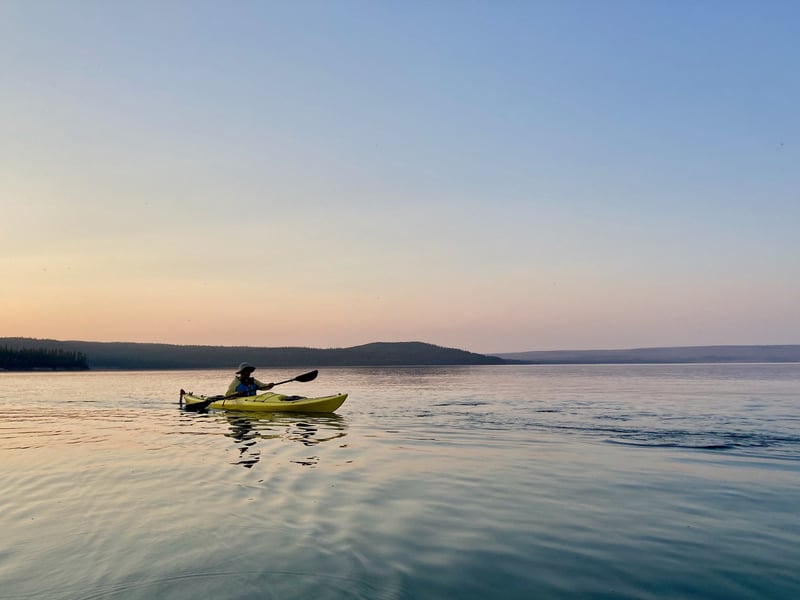 We had a three-hour sunset kayaking trip with Grand Prismatic Tours in late September 2025. Dylan was our guide, and he did a phenomenal job. He was personable, knowledgeable, and kind. My husband and I were in a tandem kayak and the six-mile round-trip paddle was easy to execute and enjoyable. Dylan pointed out wildlife as we paddled - a bald eagle and a close-up elk on the shoreline were particularly memorable - and told us interesting facts about the lake and Yellowstone’s geothermal features. Speaking of, seeing the geysers from the water was a really unique and neat experience. I would highly recommend!