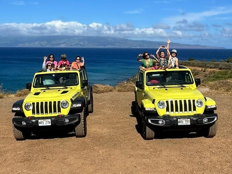 Explore West Maui’s coast by open-air Jeep with stops at Nakalele Blowhole and Honolua Bay, plus snacks and drinks